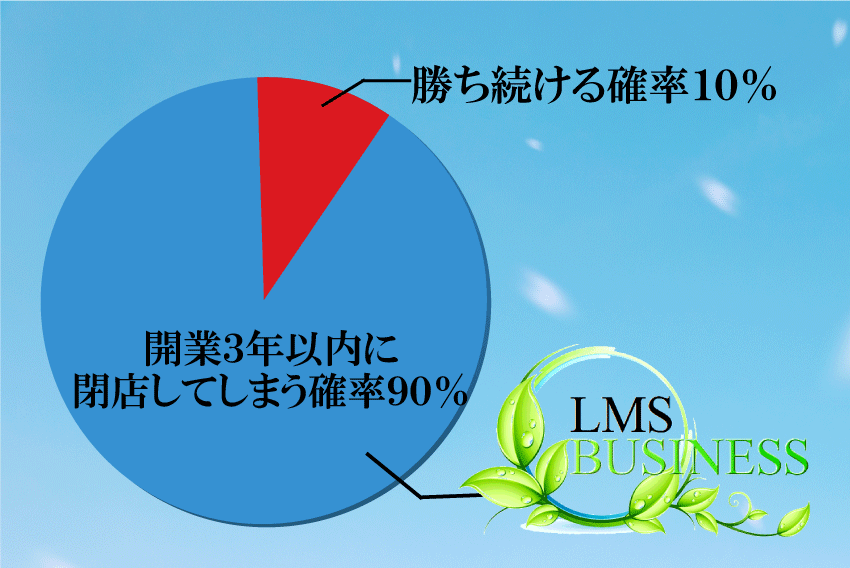 しかし、競争の激しい既存市場により閉店する店舗も目立ちます。実数として、開店後3年以内に閉店する確立(市場)90%とも言われています。つまり、閉店せず勝ち続ける店舗(市場)は10%しかないという事です。美容サロン業界で開業後の成功率が低い要因は下記5点です。